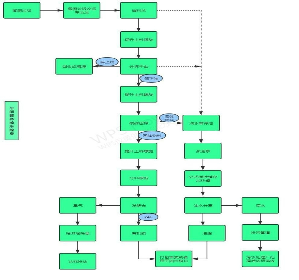 針對(duì)餐廚垃圾處理設(shè)備可將餐廚垃圾轉(zhuǎn)化為高品質(zhì)有機(jī)肥,從源頭消除餐廚垃圾,緩解餐廚垃圾給環(huán)境造成的壓力。該設(shè)備構(gòu)建模塊有分揀系統(tǒng)、自動(dòng)上料系統(tǒng)、破碎壓榨系統(tǒng)、鏈板輸送設(shè)備、分料螺旋系統(tǒng)、微生物發(fā)酵系統(tǒng)、廢氣凈化處理系統(tǒng)、油水分離系統(tǒng)、智能控制系統(tǒng)八大模塊,可適用于餐廚垃圾的源頭無(wú)害化、減量化、資源化處理;通過(guò)微電腦系統(tǒng)智能調(diào)節(jié)攪拌周期、加熱時(shí)間等,精確控制物料停留時(shí)間,通過(guò)混合、物料發(fā)酵、保持通風(fēng)、保溫、供氧狀態(tài),大大提高有機(jī)物料降解速率,提升產(chǎn)出有機(jī)肥的質(zhì)量。
